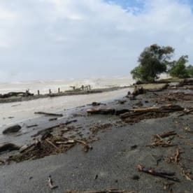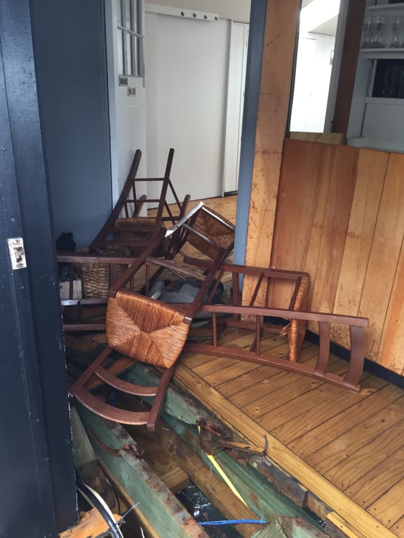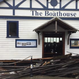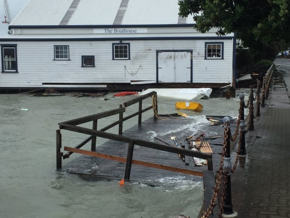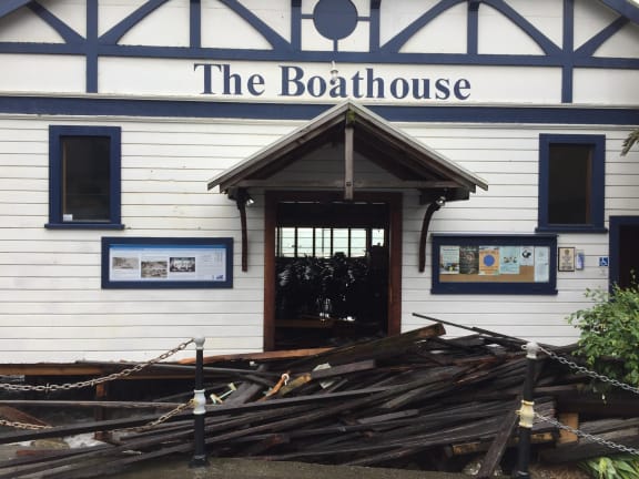 Just down the waterfront from the Boat Shed Café, the Boathouse has also been damaged. Photo: Supplied / Peter Moffatt