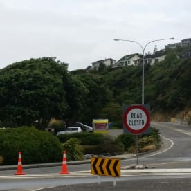 State Highway 58 closed at Whitby in Wellington. Photo: Laura Dooney