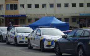 Police cordon off an area at Taranaki Base Hospital after a shooting incident in August. Photo: RNZ/Robin Martin