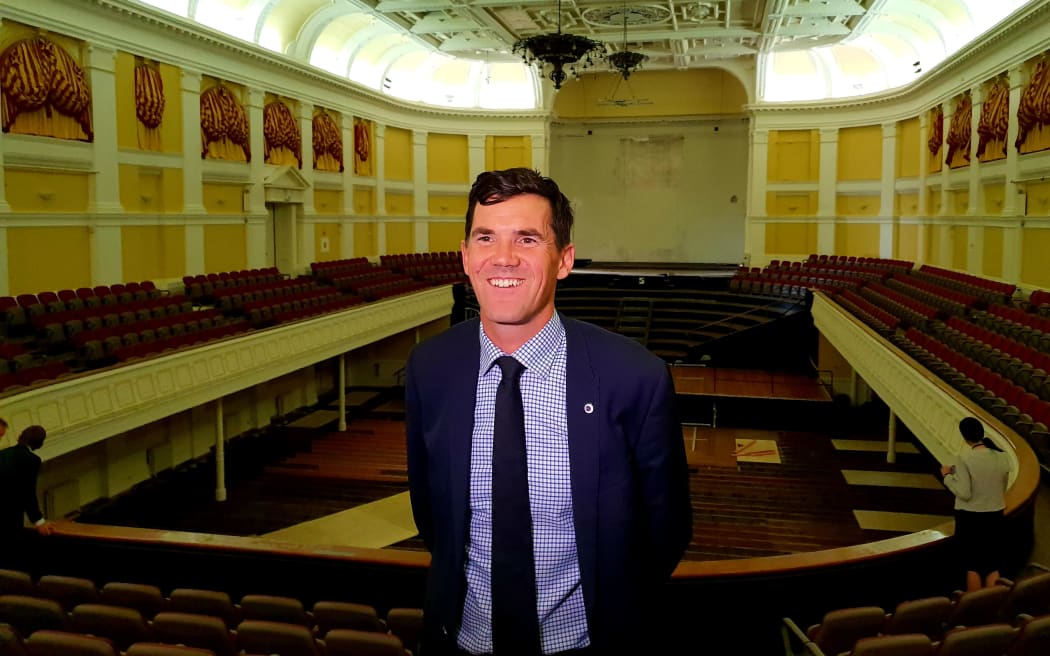 Wellington mayor Justin Lester in the town hall. Photo: RNZ / Laura Dooney