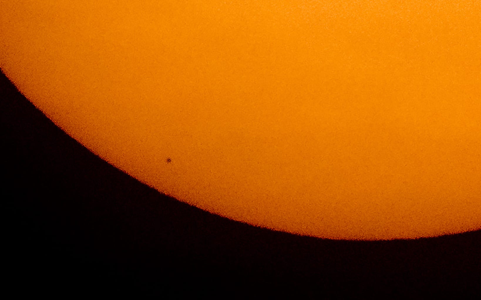 Mercury in silhouette, low center, as it transits across the face of the Sun on 11 November, 2019, from Washington, DC. Photo: Bill Ingalls / NASA / AFP