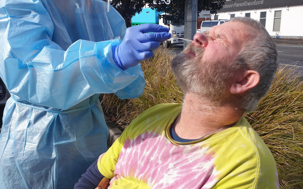 Garth Guptill getting his nasal swab. Photo: RNZ / Robin Martin