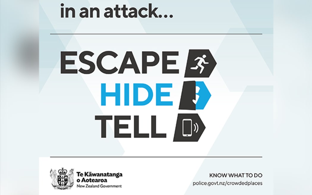 A new campaign aims to educate the public and venue operators about what to do during an armed attack in a crowded place. Photo: Supplied / NZ Police