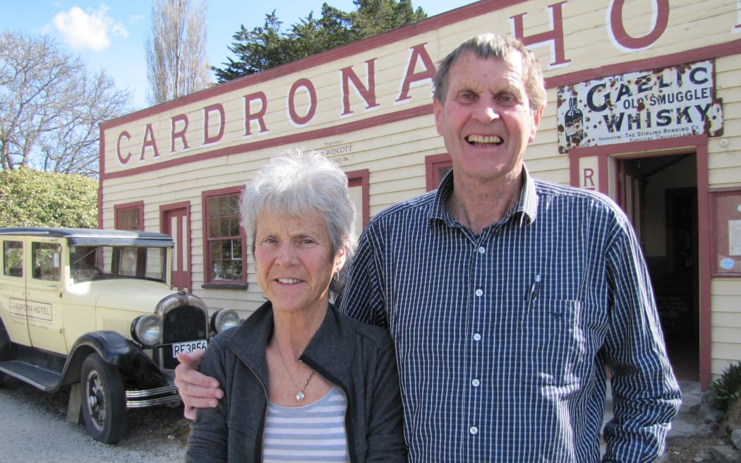 John and Mary Lee, outside the Cardrona Hotel, which they owned in the 1970s. Photograph: Otago Daily Times Photo: