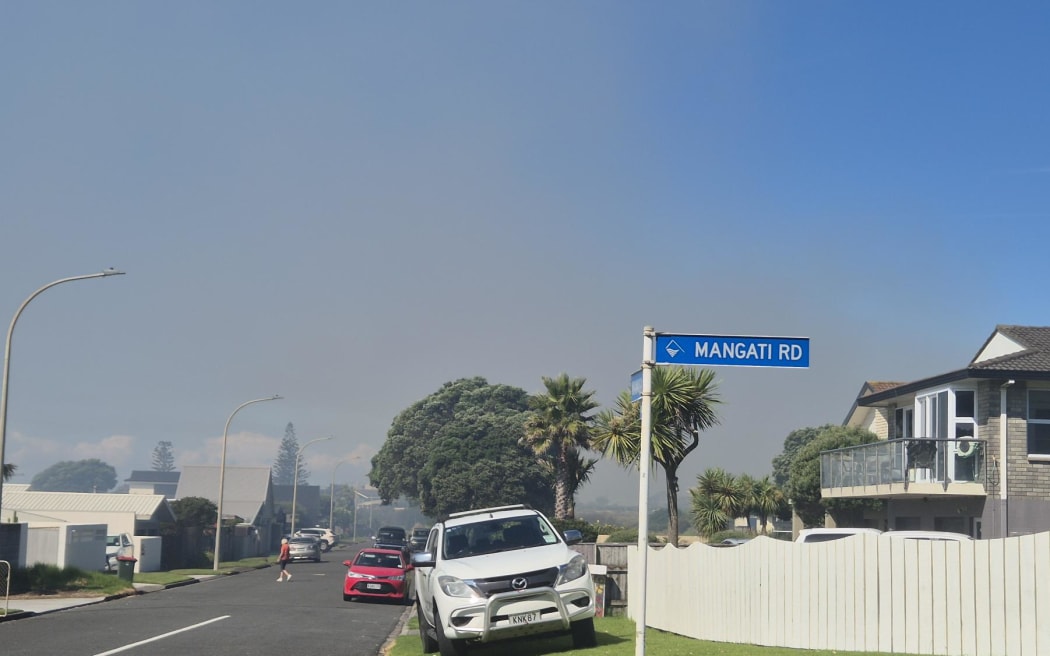 Smoke from the fire spread across Bell Block and the neighbouring town of Waitara on Wednesday afternoon.