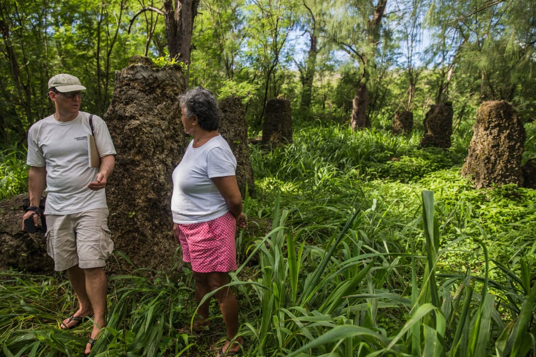 Earthjustice lawyer David Henkin (left) and Deb Fleming, a Tinian resident at Masalok, an ancient Marianas cultural site where local residents gather plants for subsistence and traditional medicine. Proposed US military training would prevent access to this site much of the year. Photo: Dan Lin|image_alt_text=Earthjustice lawyer David Henkin (left) and Deb Fleming, a Tinian resident at Masalok, an ancient Marianas cultural site where local residents gather plants for subsistence and traditional medicine. Proposed US military training would prevent access to this site much of the year.
