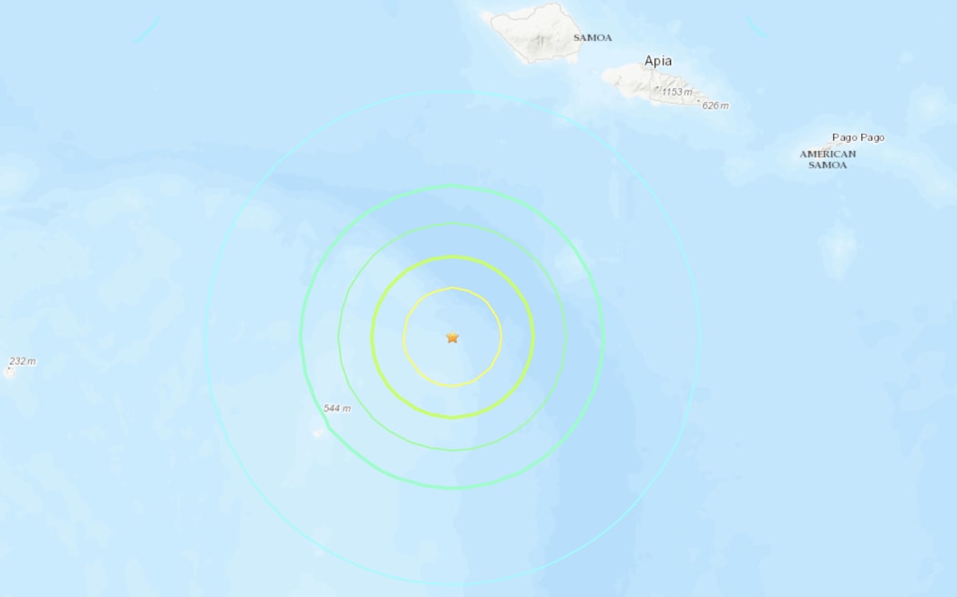 The US Geological Survey reports the shake happened south-east of Samoa at a depth of 36km about 8.30am local time.