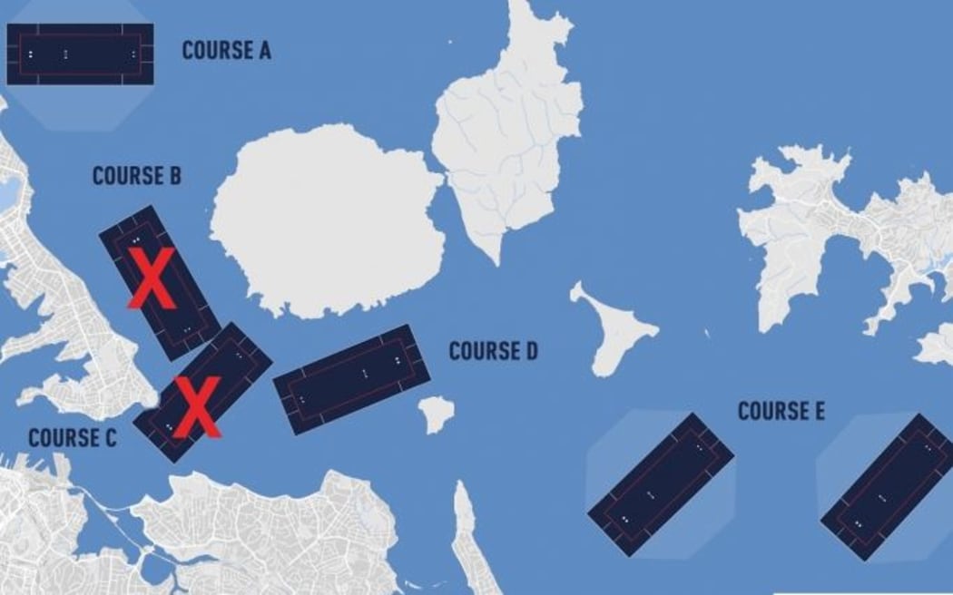 A map supplied by Emirates Team New Zealand showing the courses that it previously said now would not be used for racing. Photo: Emirates Team New Zealand