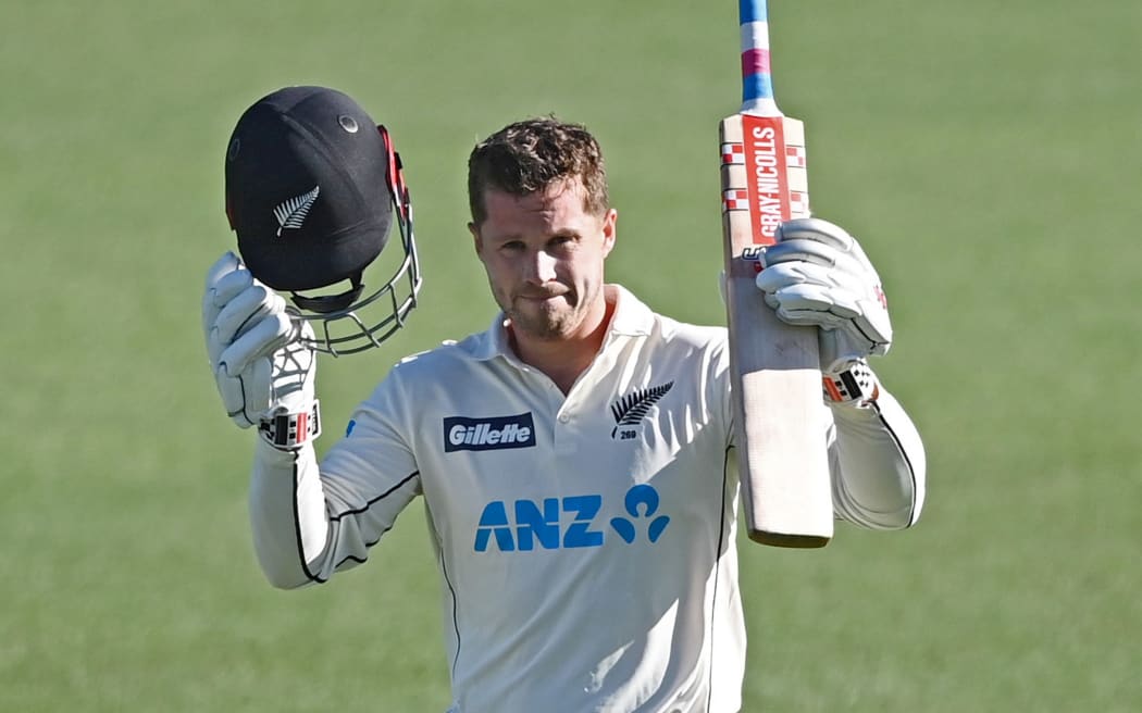 Henry Nicholls acknowledges the Basin Reserve crowd after scoring his sixth test century. Photo: Photosport