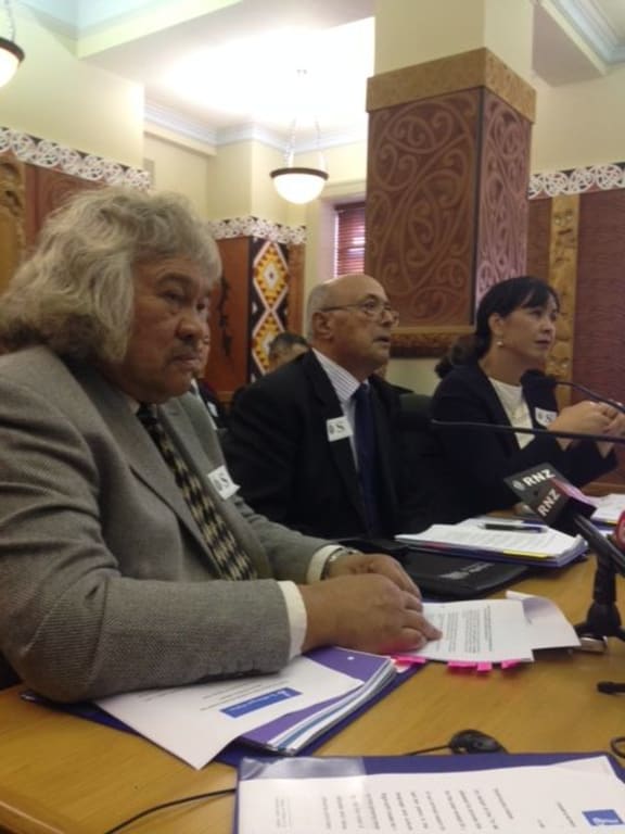 Left to right: Te Māngai Pāho's John Bishara, Piri Sciascia and Rawinia Higgins Photo: RNZ / Leigh Marama McLachlan