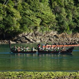 Mr Nepia was on one of the waka tangata that met the Tuia 250 Voyage flotilla as it arrived at Meretoto at the head of Tōtaranui/Queen Charlotte Sound - the home of Ngāti Apa ki te Rā Tō, Ngāti Kuia, Rangitāne o Wairau and Te Āti Awa o Te Waka-a-Māui,