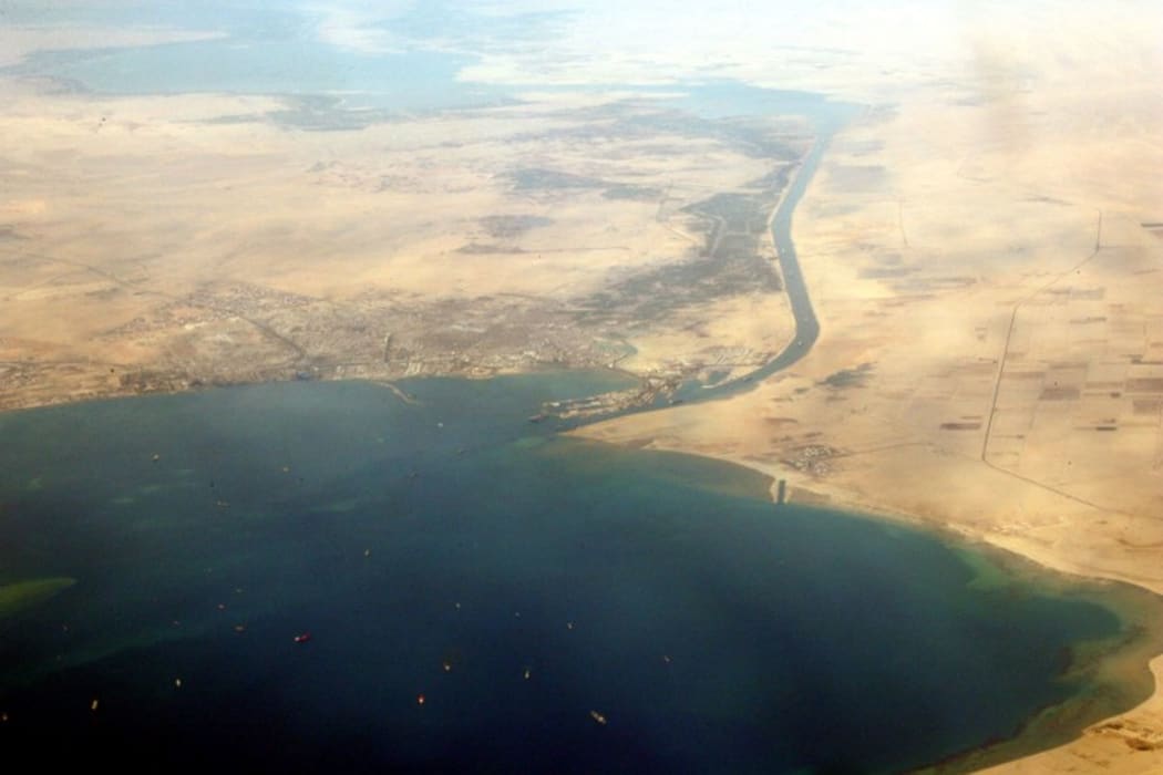 A picture dated on 31 December 2007 shows an aerial view of the southern entrance of Egypt's Suez Canal. Photo: AFP