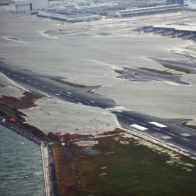 Airport officials began transferring the stranded passengers to nearby Kobe airport by high-speed boats and buses, the government said.