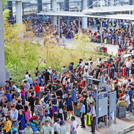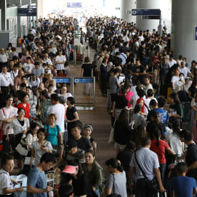 Television footage showed people lining up to buy food and drinks at a convenience store in the airport.