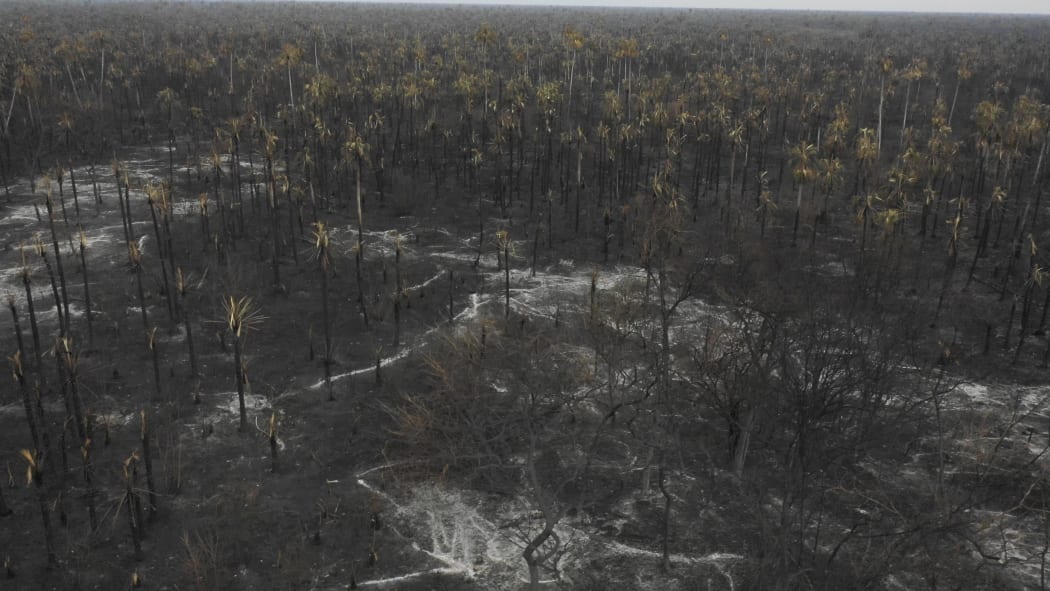 Aerial view of damage caused by wildfires in Otuquis National Park, in the Pantanal ecoregion of southeastern Bolivia, on August 26, 2019. Photo: AFP